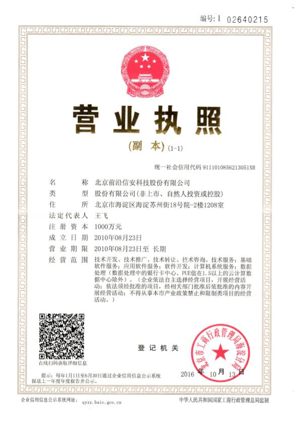 计算机信息系统安全专用产品销售许可证--前沿数据防泄漏系统