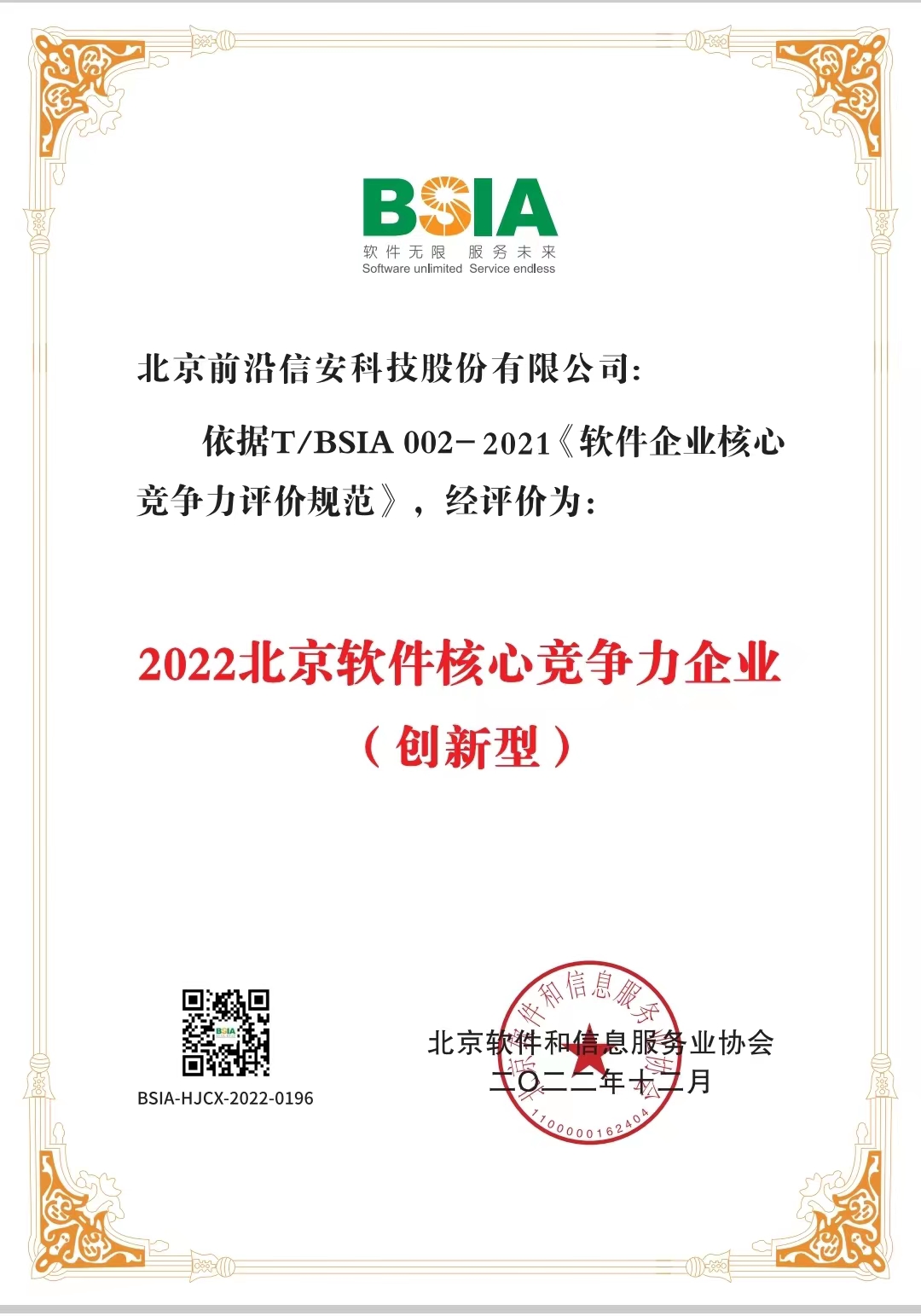 北京软件和信息服务业协会”2022北京软件核心竞争力企业(创新型) “